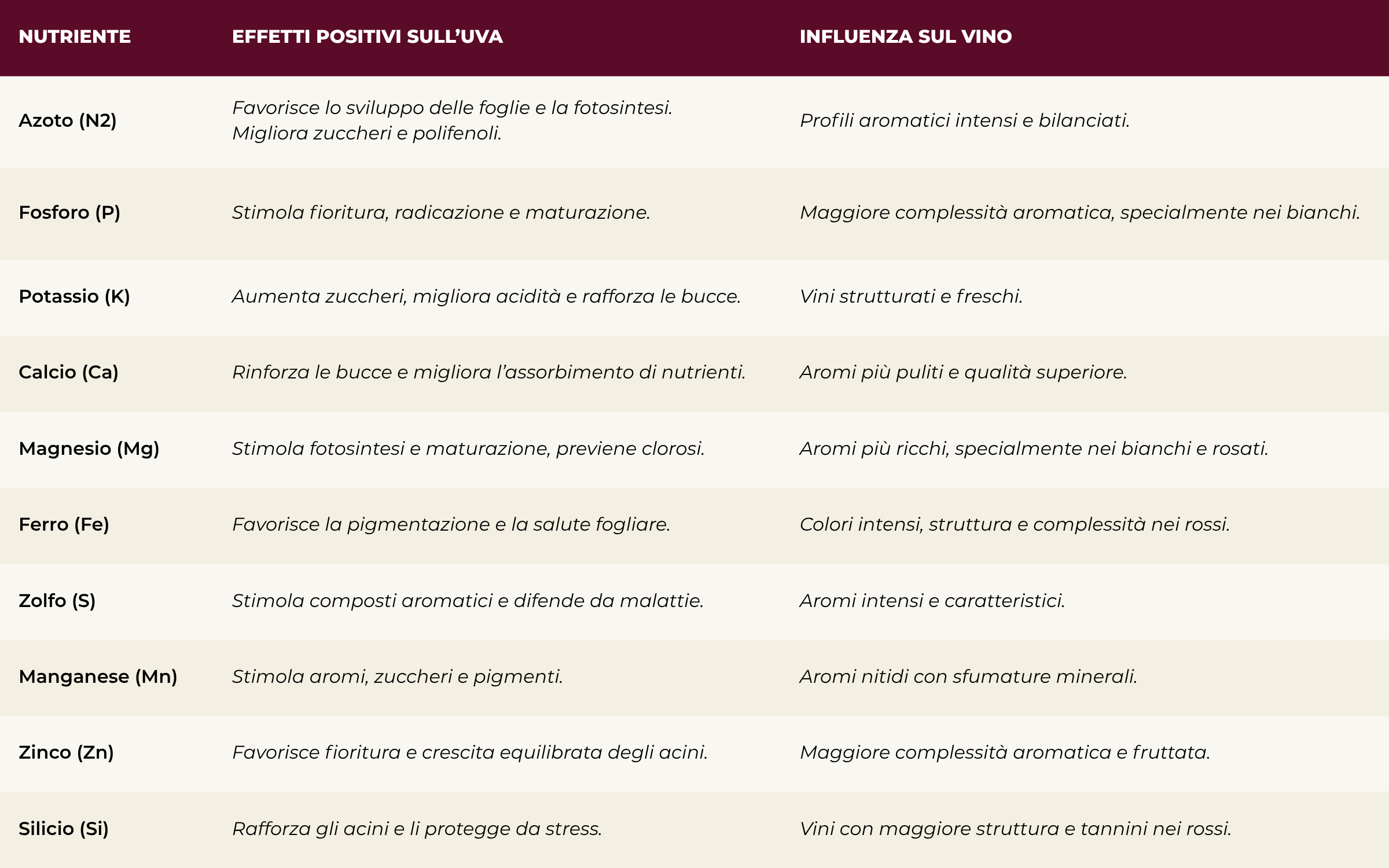I nutrienti che i nostri terreni regalano alle nostre viti: